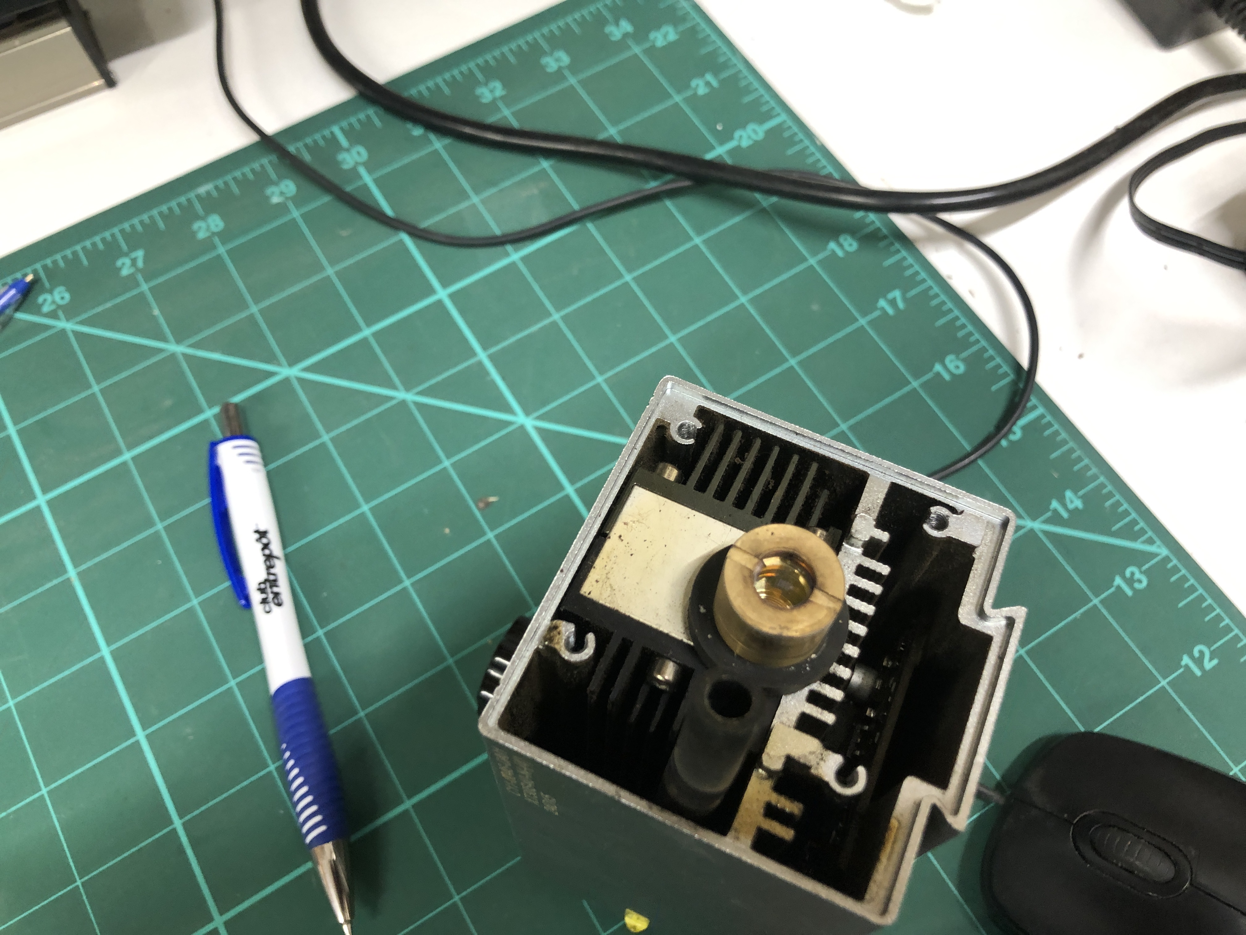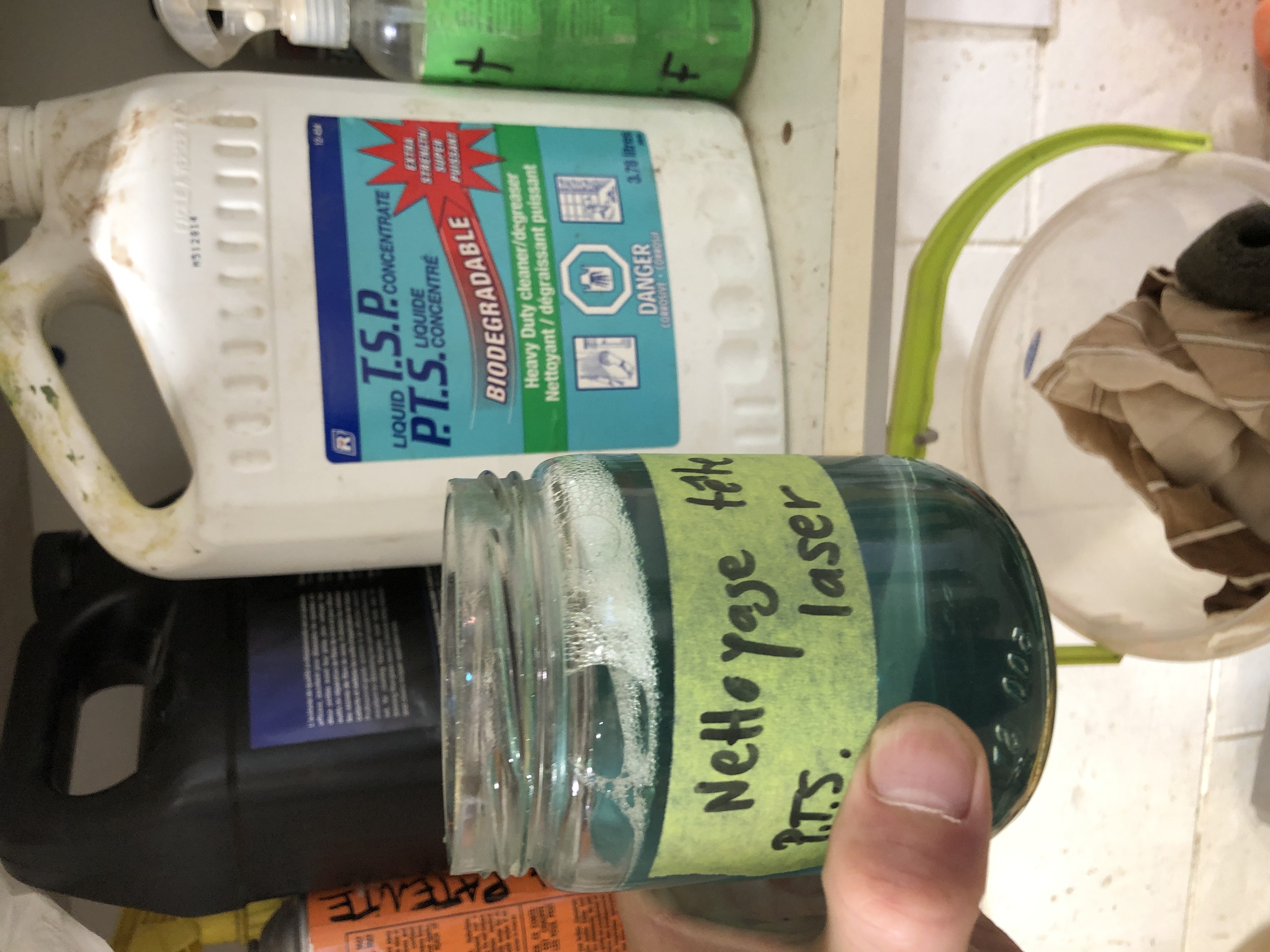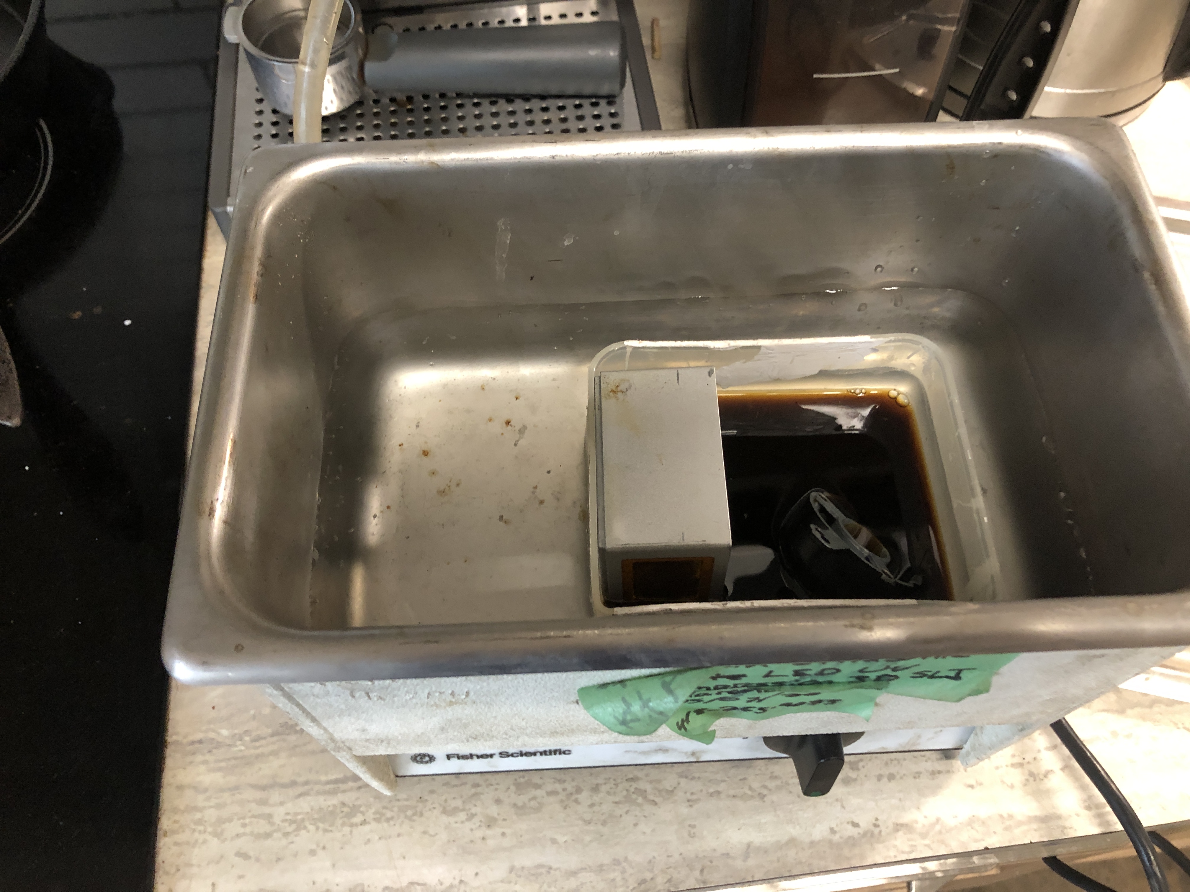 On utilise le bassin ultrasonique (se trouve dans l'atelier d'électro) et le produit PST (se trouve dans la boite d'entretien du graveur. S'il n'y en a plus, le produit est dans l'atelier de bois). Il y a également du coton tige avec de l'acool pour nettoyer la diode.